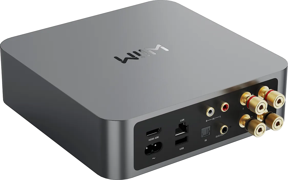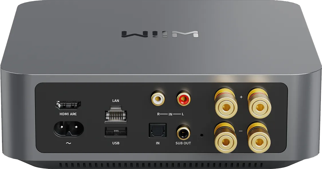 Äänilähdöt: 2 banaaniliitintä (SNR: 99 dB, THD+N (1kHz), 5W/8Ohms: -95 dB), subwoofer