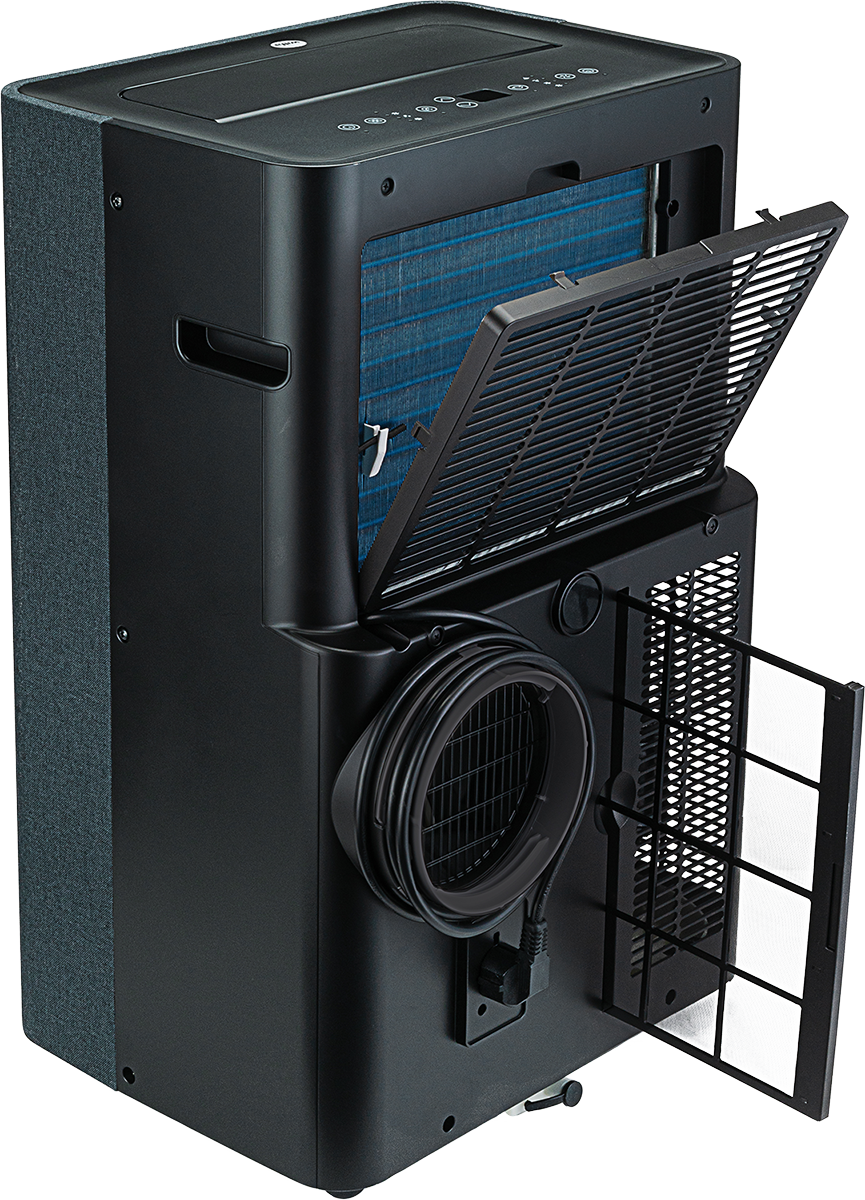 Ilmastointilaitteen etupaneeli on päällystetty harmaalla kankaalla, joka tekee laitteesta tyylikkään ja ajattoman. Kankaan puhtaanapito on helppoa ja sen voi tarvittaessa imuroida puhtaaksi.