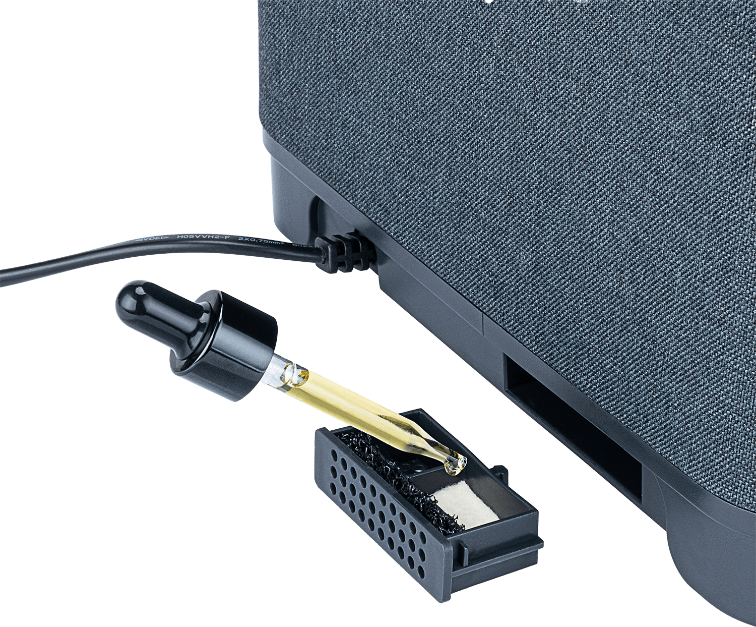 Lisähyvinvoinnin takaamiseksi voit käyttää Nimbusin aromitoimintoa ja lisätä eteerisiä öljyjä levittääksesi miellyttävää tuoksua huoneeseen. Luo harmoninen ilmapiiri suosikkituoksullasi ja tee kodistasi rauhan ja rentoutumisen keidas.