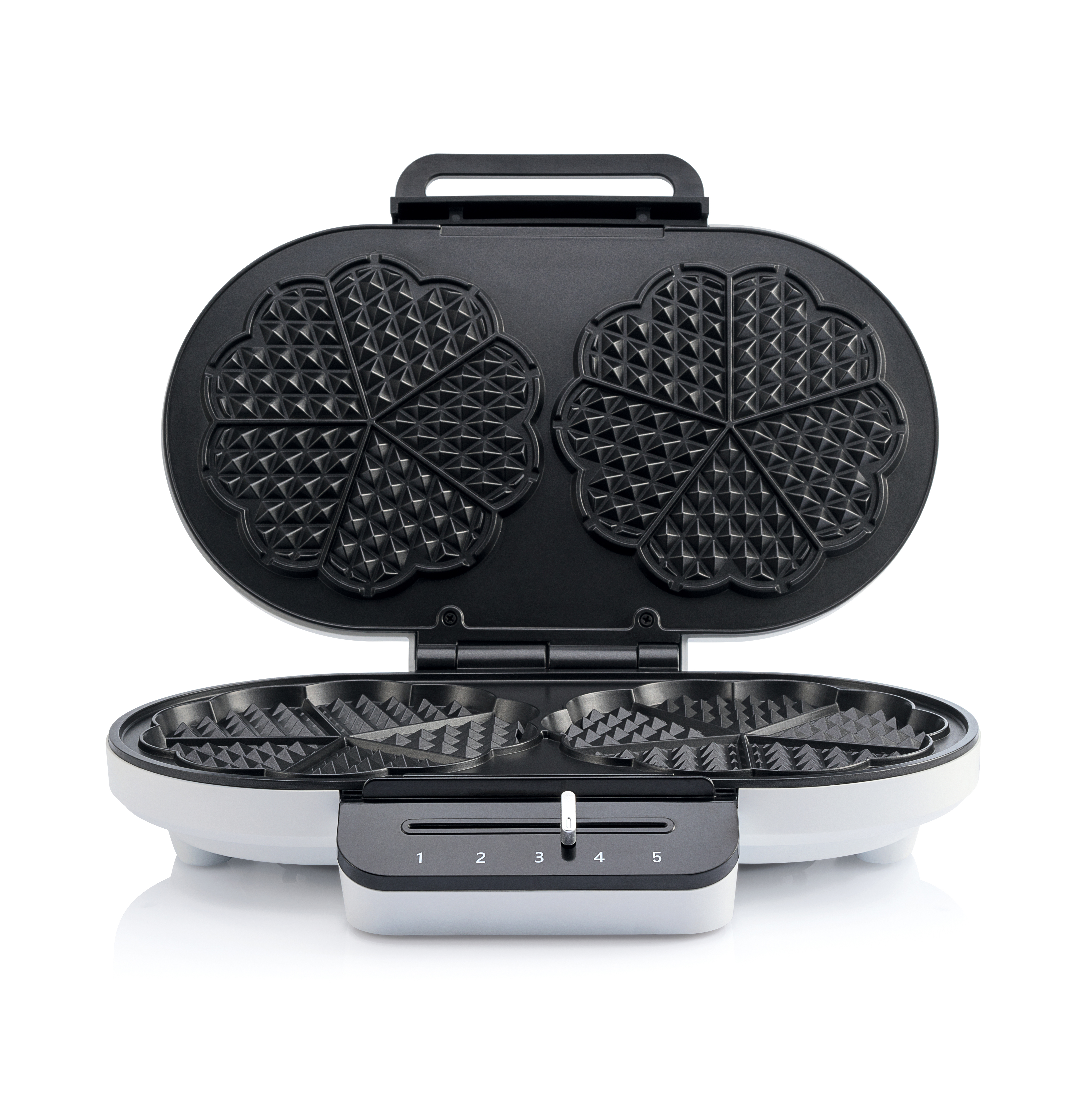 Valkoinen tuplavohvelirauta paistaa täydelliset, kultaiset ja herkulliset rapeat vohvelit kerta toisensa jälkeen. Se paistaa 2 x 5 vohvelisydäntä ja jokaisen vohvelin halkaisija on 16 cm.