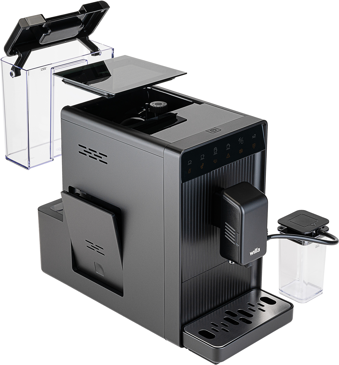 Irrotettava maitosäiliö mahdollistaa maitopohjaisten juomien valmistuksen ja se voidaan helposti säilyttää jääkaapissa, kun sitä ei käytetä. Tämä ominaisuus varmistaa, että maitosi pysyy tuoreena ja valmiina seuraavaa kahviluomustasi varten. Maitosäiliön tilavuus on 240 ml.