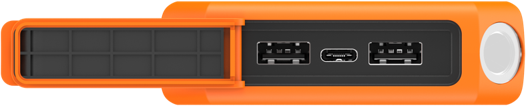 IP65-vedenkestävyyden ansiosta Rugged Power Bank kestää vaikeitakin sääolosuhteita, eikä se hajoa matalaan veteen pudotessaan. Virtalähteessä on integroitu taskulamppu, jonka ansiosta sinulla on näppärä hätävalaistus aina kätevästi saatavilla.