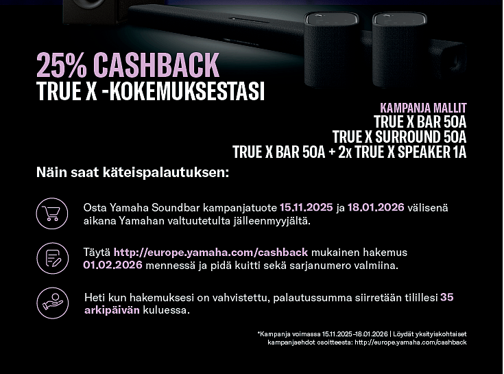 Teho yhteensä: 3000W (soundbar 180W + subwoofer 100W + takakaiuttimet 20W)