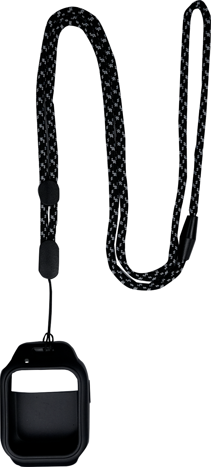 Monikäyttöinen ja kestävä polyesterinauha, jossa on turvallinen ABS-lukko. Mahdollistaa kellon kantamisen kaulassa tai kiinnittämisen laukkuun. Helppo ja kätevä tapa ehkäistä kellon katoaminen. Sisältää myös pehmeän ja kestävän silikonikuoren UV-viimeistelyllä. Suojaa kellon rungon iskuilta ja naarmuilta säilyttäen tyylikkään ulkonäön. Täydellinen yhteensopivuus kaulanauhan kanssa.