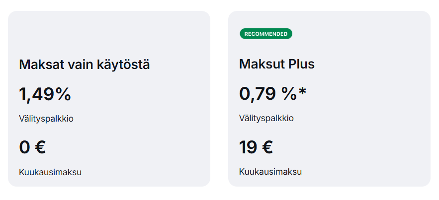 Ei sopimusta. Ei kiinteitä kustannuksia maksupäätteen kanssa. Maksat vain
